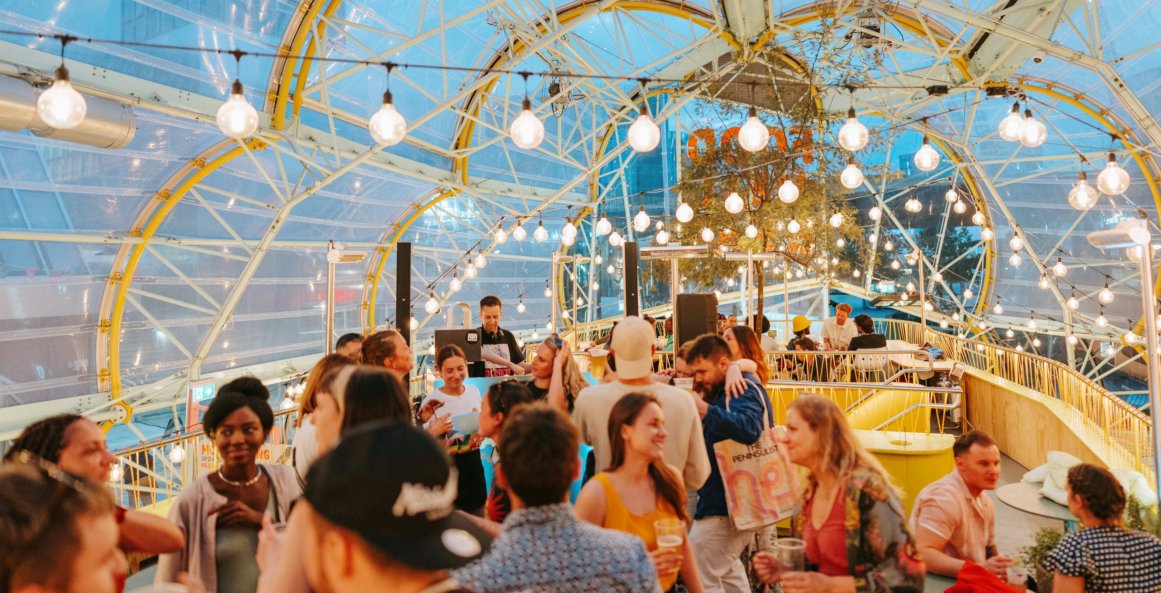 As the sun sets over Greenwich Peninsula, soak up the good vibes at Sunset Sessions-enjoy delicious food, refreshing drinks, and feel-good beats at Canteen Food Hall & Bar.