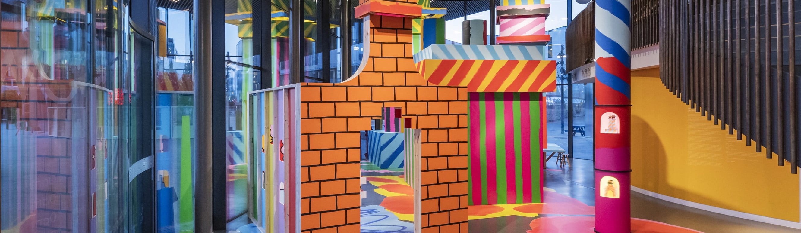 Open to the public and free to visit from 21 June – 22 September 2024, Up In Smoke sees the gallery space transformed into a vibrant, colourful and interactive installation that tells the story of Greenwich Peninsula through its iconic chimneys, evoking the memories of the area’s lively past, and its transformation from a historic former marshland to the vibrant cultural hub it is today.