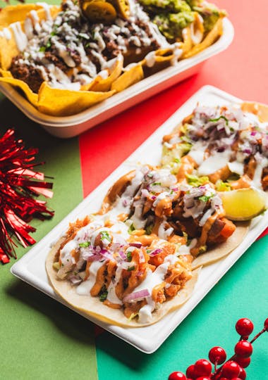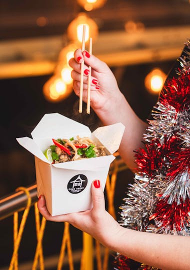 Most street food halls aren't available for Christmas hire, but we are! Our festive venue is the ideal fit for office parties of all sizes, accommodating teams from 20 to 300, and your colleagues can enjoy the benefit of multiple street vendors, catering to all dietary requirements.