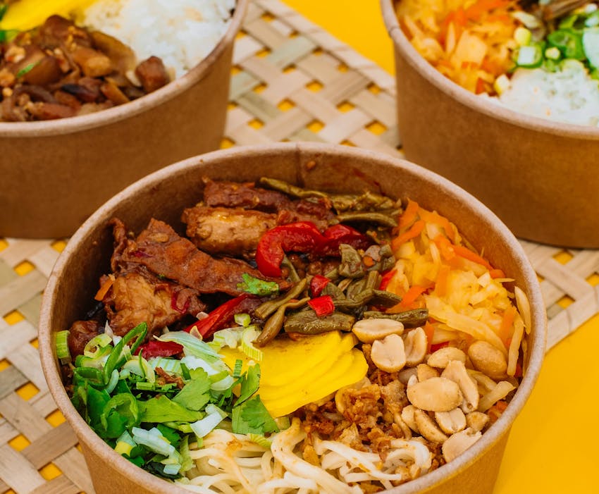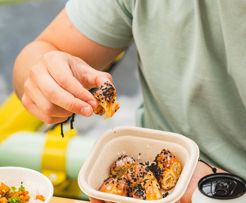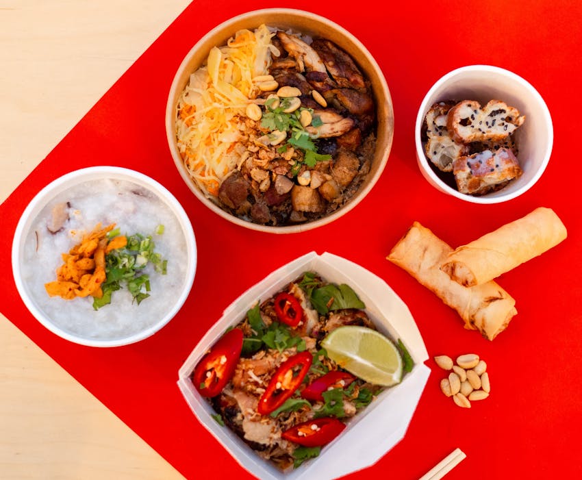 Juk Pou brings the comforting flavours of East Asia to the heart of Design District. As London's first street food concept focused on congee and youtiao, Juk Pou offers a modern take on these traditional dishes. Their menu extends to rice and noodle bowls featuring delights such as Taiwanese Braised Pork, Honey BBQ Chicken, and Yuxiang Tofu, alongside sweet treats including Sesame Brittle and "Sweet Bombs" with condensed milk and chocolate.