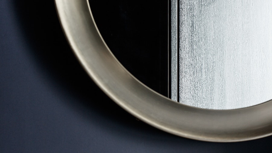 Note the absence harsh corners—the soft, subtle curves of mirror, lampshade and vase, speaking of gently drifting away.