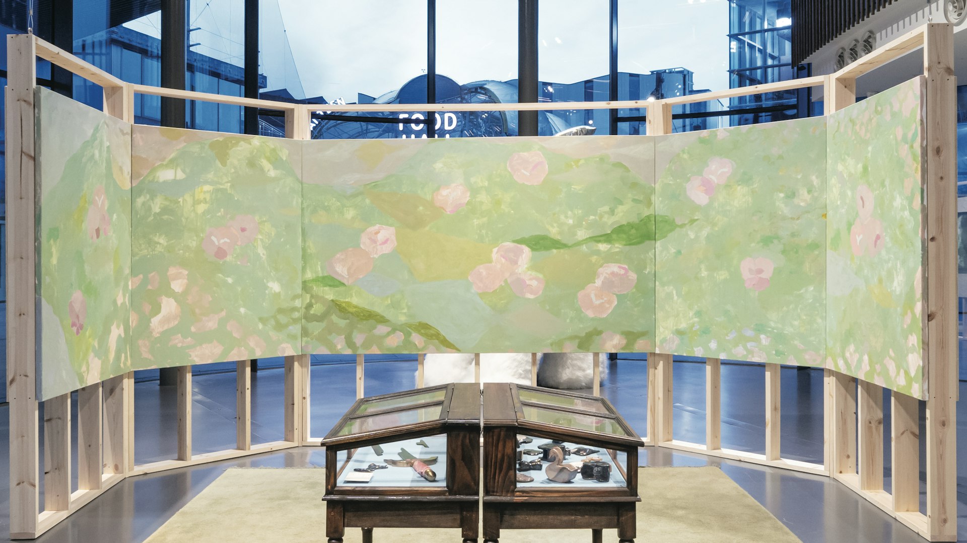 Currently the space is dominated by a towering series of paintings (the largest of which is three metres long) that she’s working on for Like A Melody: Myths, Memories, and Fantasy, her debut exhibition at NOW Gallery. Propped up against the walls, the pieces envelop us like a comforting blanket, their dreamy, pastel-tinted swathes of colour illuminated by the intermittent and unreliable March sun.