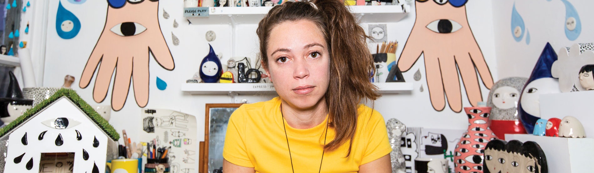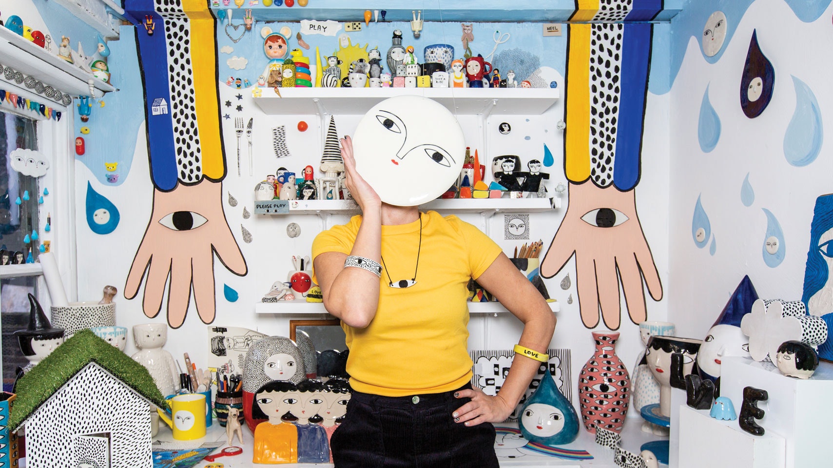 Growing her reputation slowly, selling work on Etsy and through Instagram (she now has over 36K followers), Kinska predated the ceramics trend now taking off in art and design. “Sometimes people ask me when I started,” she says. “I believe I never stopped making because when we are children, we are always making things. I create characters. I think it’s a really fun way in which to live your day.”