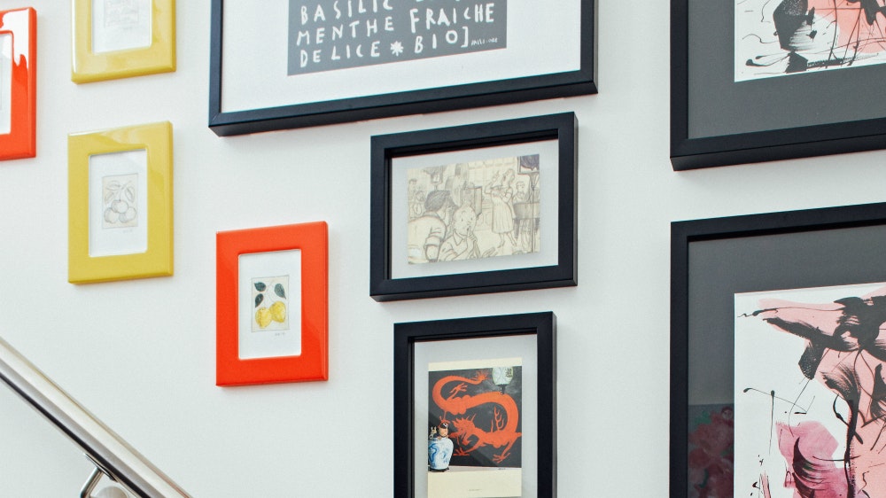 ALEX: “I work in the study area in the evenings or on grey days, but when the sun’s shining I sit at the dining table so I can look out.” Down the hall, Alex and Katherine have used the double-height ceiling of the stairwell to its full potential to display a range of the artwork they’ve collected over the years.