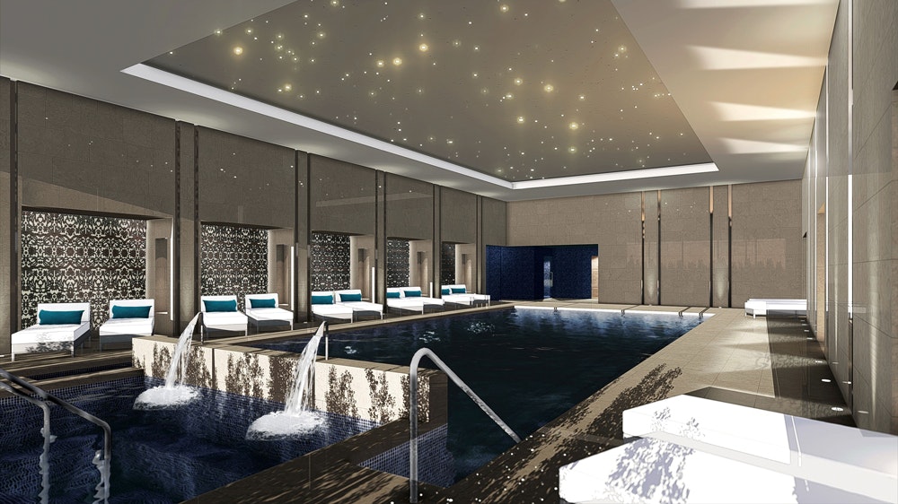 One of the hotel’s most striking features is a 3000 sq m pillar-free ballroom—the largest single scale of its kind in Europe, with capacity for 3000 guests—which references an old-world glamour.