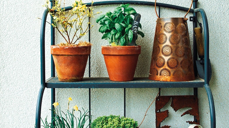 If sills and ledges are few and far between, you can still become an urban gardener—you’re just going to have to get creative. Search Pinterest for Tillandsia (air plants) and you’ll discover a cult of urban growers who find inspired ways to work with this South American perennial, whose short, wiry roots require no soil. Hang it from a fishing line around a door frame, wrap around a log propped up in the corner of a balcony, or suspend from a bird cage, terrarium or bell jar for a truly modern take on the hanging basket. If horizontal space is non-existent, air plants can also be used to create so-called moss walls, whose popularity has increased in correlation with the shrinking of London’s gardens. If you’re flush, specialist contractors can turn your wall into something akin to a vertical lawn, but there are DIY kits if you really fancy a challenge.
