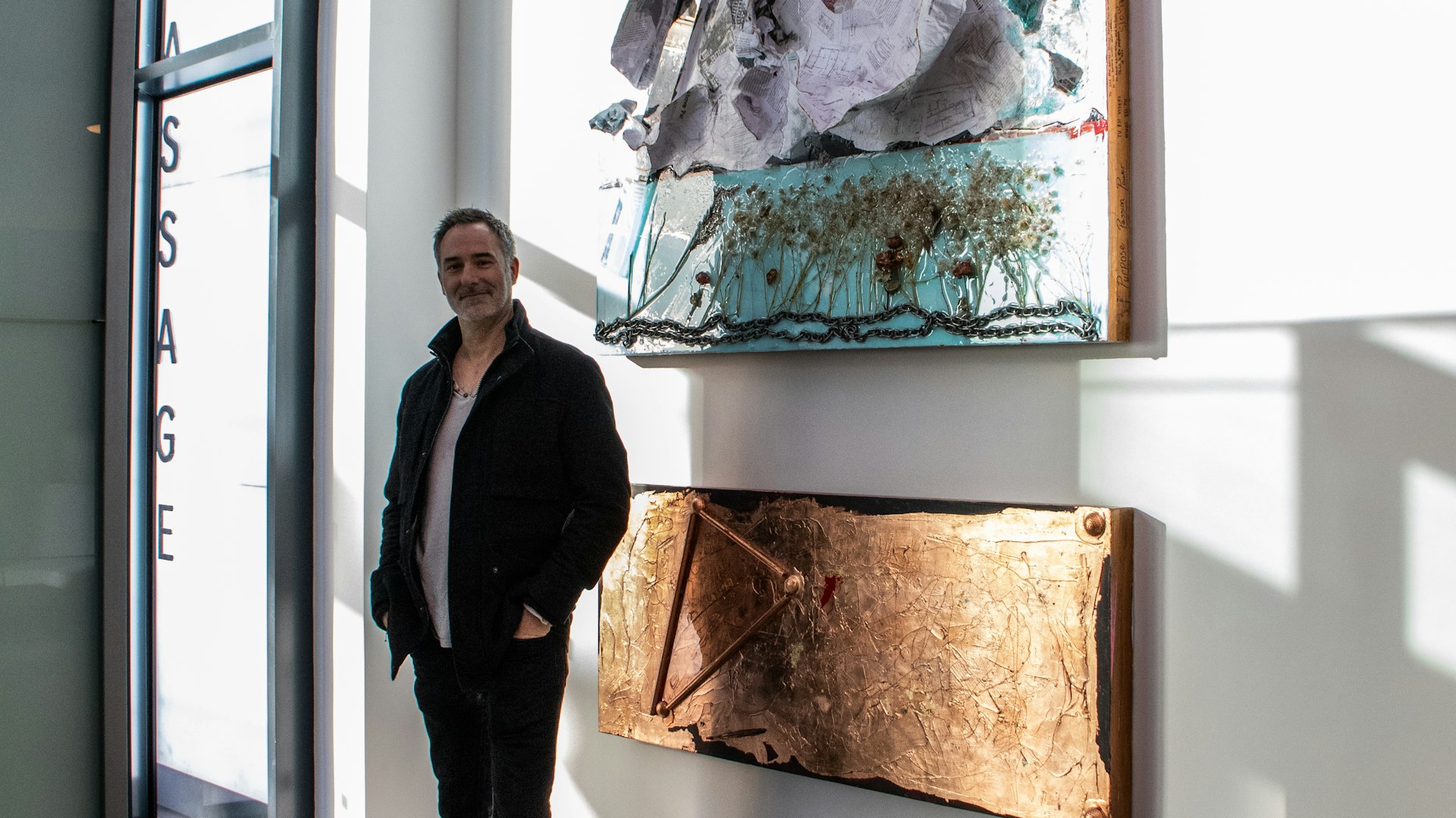 Mixed Media: Acrylics, found objects, photography, resin on board