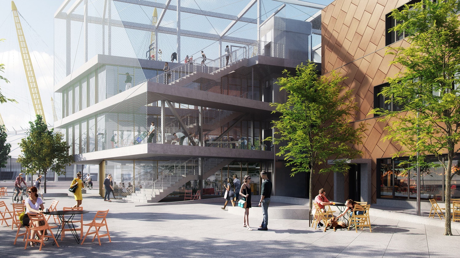 With such a vast range of possibilities at one’s fingertips, Design District will make it easy for creatives to experiment with new ideas or take the leap into a new direction. Of course tenants will find bookable meeting rooms with all mod cons, but there are unexpected facilities too. Budding food and drink businesses can use the industrial test kitchen to explore new ideas or cater for events, and illustrators can hire the public-facing book shop to launch a new book or zine. There’s even a rooftop sports court where creatives can meet up after a long day and play together.