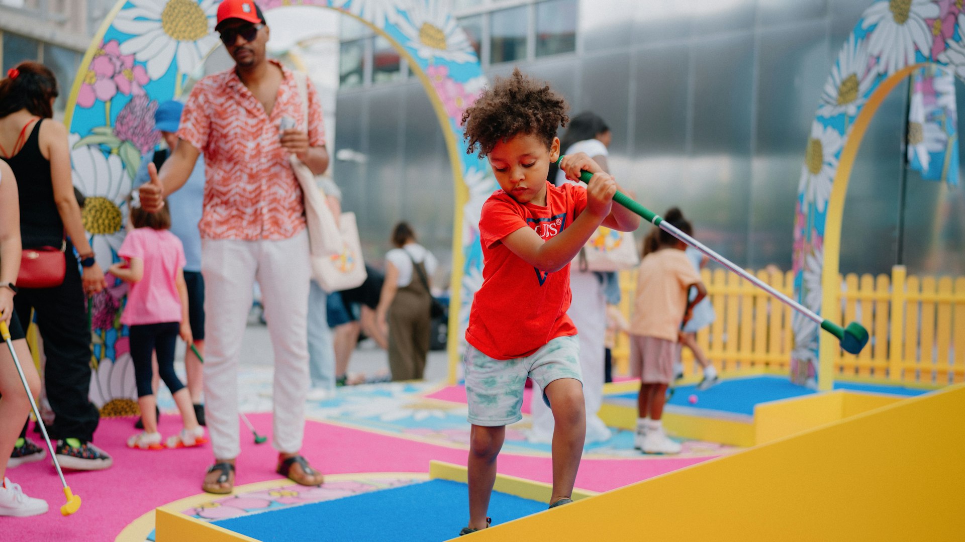 @graphic_rewilding; Wild Swing Mini Golf tees off July–August, Peninsula Square