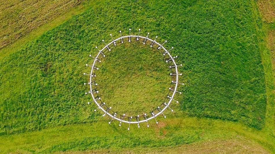 This mechanical installation will create a juxtaposition of noise and structure in an urban landscape with 32 wind turbines driving hundreds of mini beaters to generate an ever changing equine rhythm. The artwork is arranged in a circular form to allow people to step into the work and look out through framed views of the fort and landscape. The circular form creates an experience much like being in a room with a surround sound stereo system where the soundscape is constantly altering in direction and rhythm.