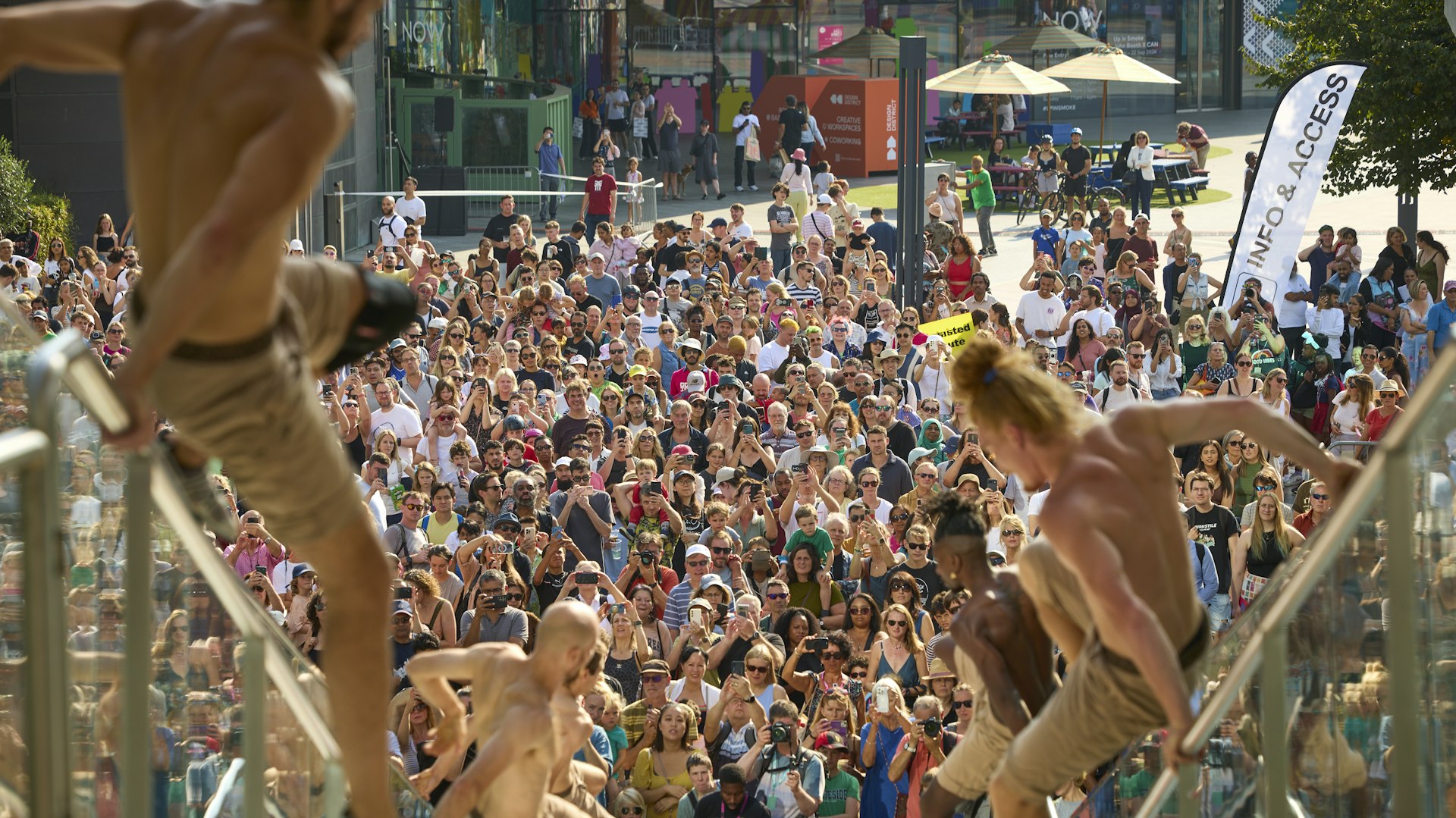 We think a lot about people. We did an event in Thamesmead in 2022 called Follow Me, during the pandemic, and it was a piece of Belgian circus theatre from a company called Be Flat. We were all given a stool and had to follow along with it. At one point, it was a musical instrument, then we sat on it, then we did the conga – it was hilarious. There was one dad with his three-year-old lad there in an absolute trance. It turned out it was their second day living in that estate, and you just thought, well, how amazing that this little boy will have seen everybody out on the street playing, adults and children, with extraordinary feats of parkour and acrobatics. It makes people realise they live in a special place. I think that’s very important – that we all feel special.