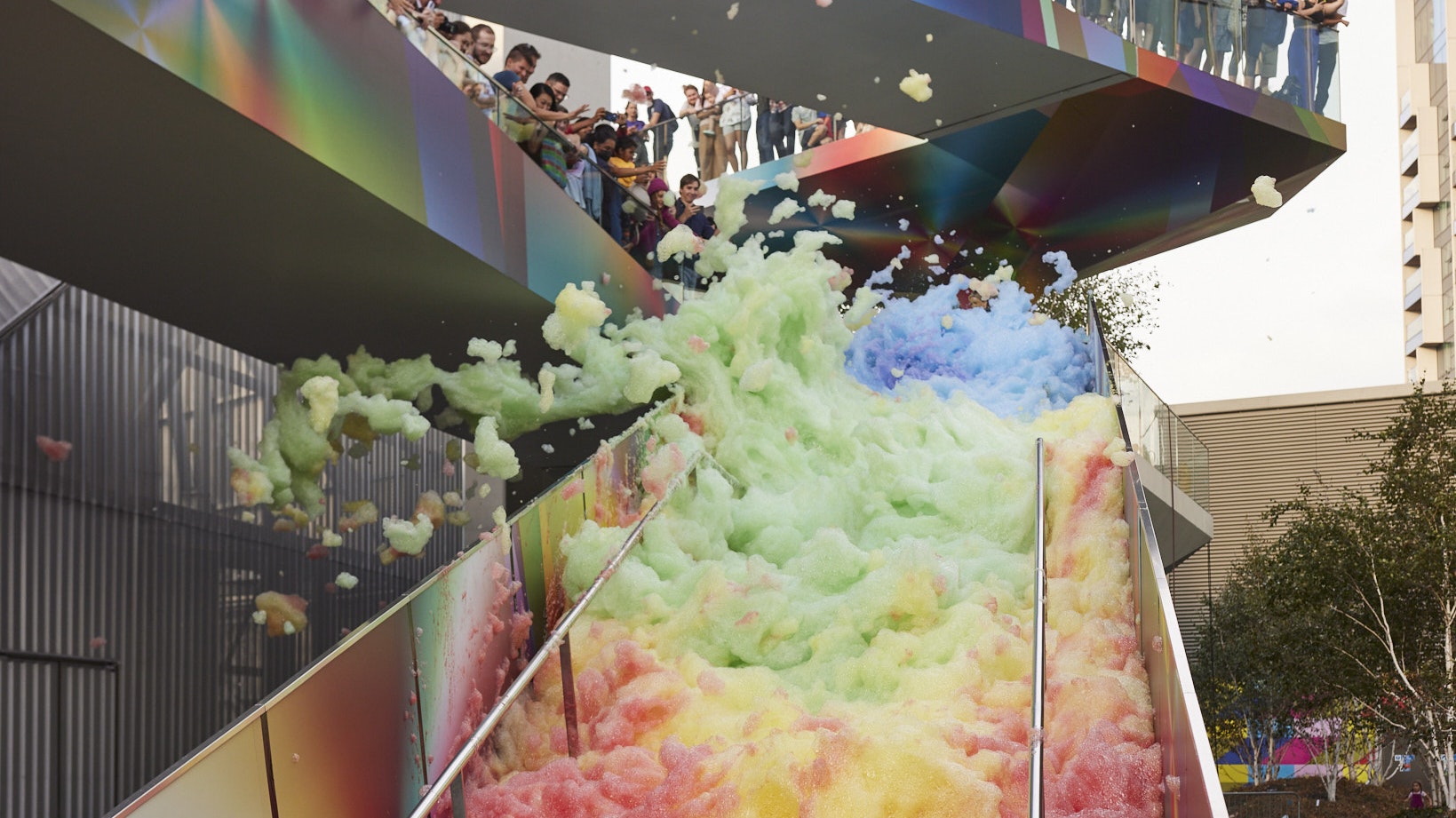 We were hugely inspired by the imagination behind The Tide, an amazing architectural feature at Greenwich Peninsula. So, in 2022, German artist Stephanie Lüning created a piece called Island of Foam, in which she live-painted rainbow foam down the steps into Peninsula Square. It was an act of great and wondrous joy, and you’ll never be able to think of that stairway up to The Tide in quite the same way again.