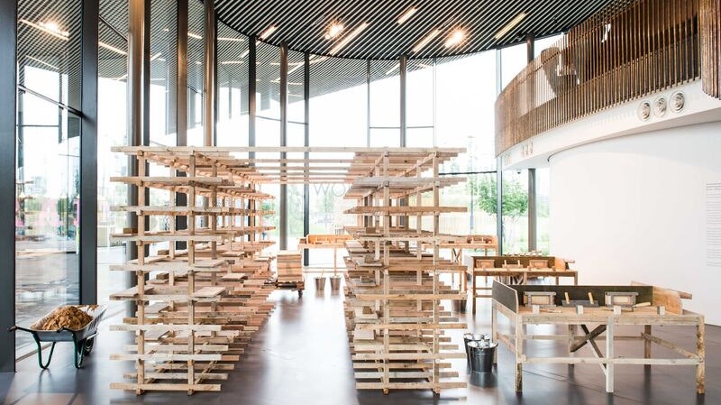 The bricks will be stockpiled and dried inside the gallery on special drying racks, created using waste wood from the building sites nearby. By the end of the summer we’re hoping to have between 3,000 and 5,000 bricks. We’ll then use them to build a kiln and fire all the bricks for three to four days, by burning the waste wood from the drying racks.
