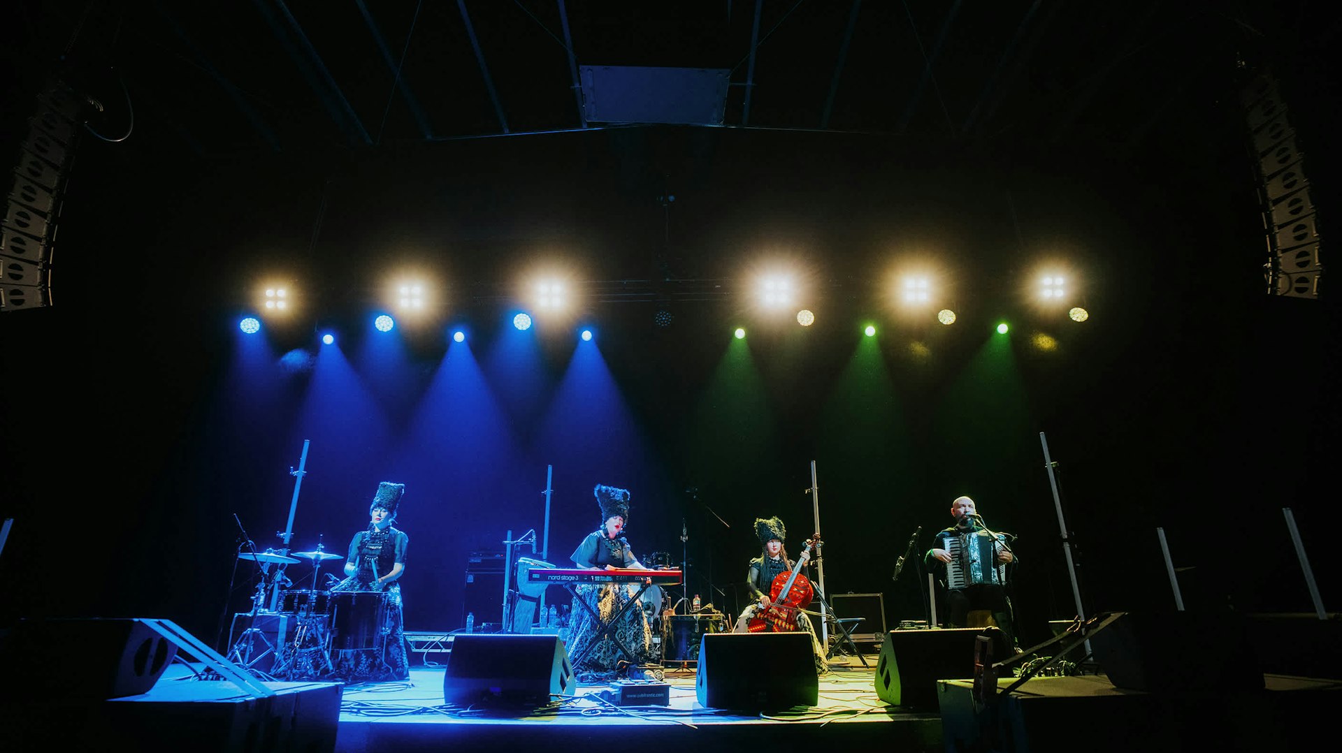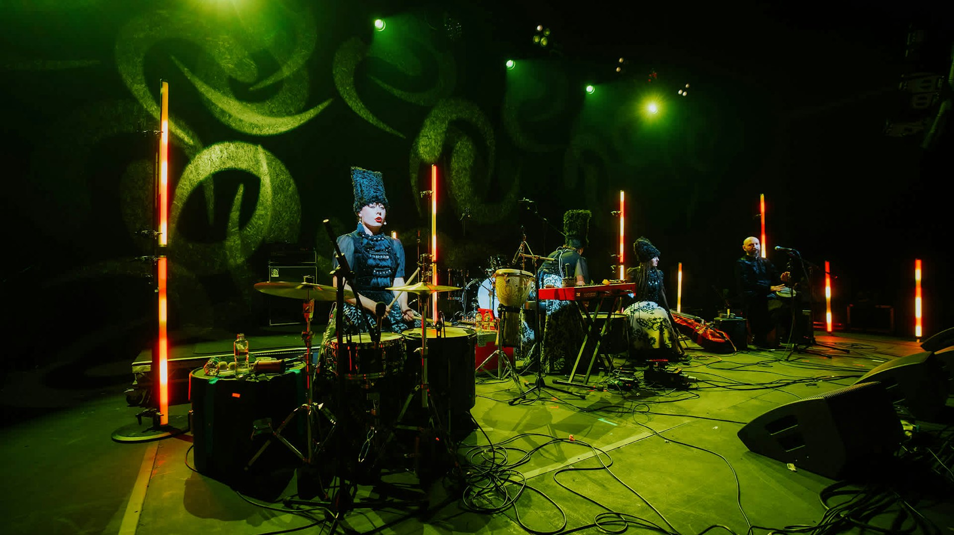 Typically, a DhakhaBrakha performance is characterised by its raw energy. The quartet are renowned for their febrile live sets that veer wildly between “moody and atmospheric” and “exuberant and percussive” inviting their audiences to revel in their chaotic mix of sounds. On their current tour, however, that chaos and exuberance has been tempered to reflect the severity of the war in Ukraine, with all the proceeds raised from live shows going directly to funding the Ukrainian army.