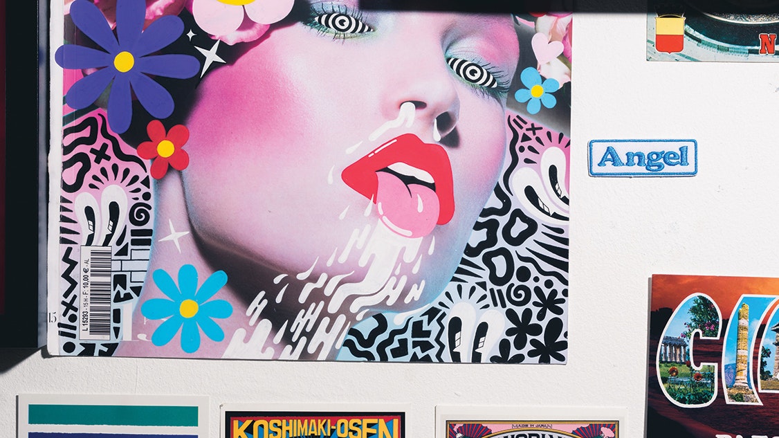 “It’s taken on a little world of its own,” she says of the process, which led to her releasing her own sticker book, Doodlebomb, last year, featuring over 500 wild designs like the ones featured on the magazine covers; from flamingos to ice-creams with eyes and winking, cartoon hearts. Head over to Instagram to see how people have used the stickers, covering whole tables with them or incorporating them into their own artwork, giving Stewart’s work a whole new lease of life – one that she has little say in.