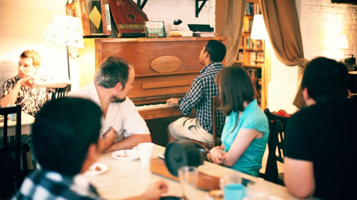 The cynics among you look away now, things are about to get seriously optimistic. For the princely sum of 8p per minute Ziferblat invites you to, you know, hang out with other people and do stuff. Or not. Just chill if you want. Have a coffee and a slice of cake. Paint a picture. Make a new friend. Read your book. Have a nap. Listen to some live music…and the like.