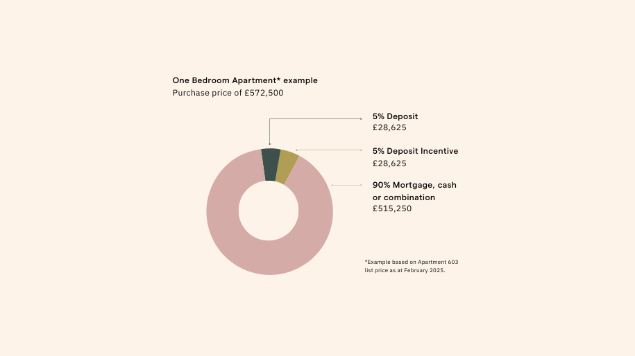 *Hamptons **Exchange contracts within 28 days of reserving your apartment. £2,500 reservation fee paid upon offer approval and subject to financial qualification by a mortgage broker. During your licence, secure your mortgage and get ready to own your home. Move in on a 12-month licence to occupy. Finalise within one month of your 12th payment. Failure to make instalment payments or complete the purchase will result in contract rescission and retention of the initial 5% deposit. Please note that ‘Rent to Buy’ is purely a description for the payment structure available. Occupancy during the 12-month period is under a Licence To Occupy as opposed to Assured Shorthold Tenancy and is in return for the payment of a licence fee as opposed to rent.