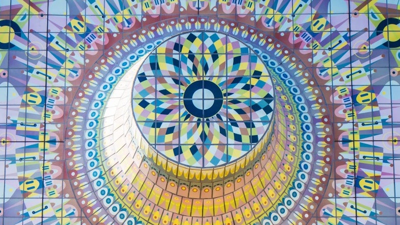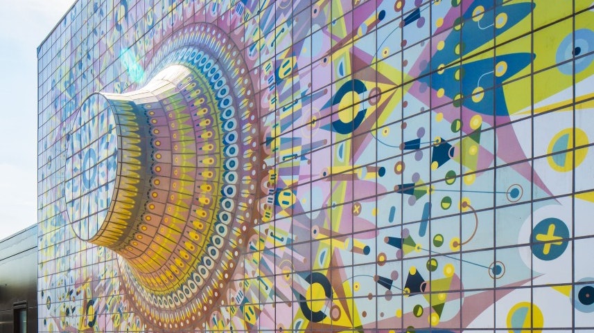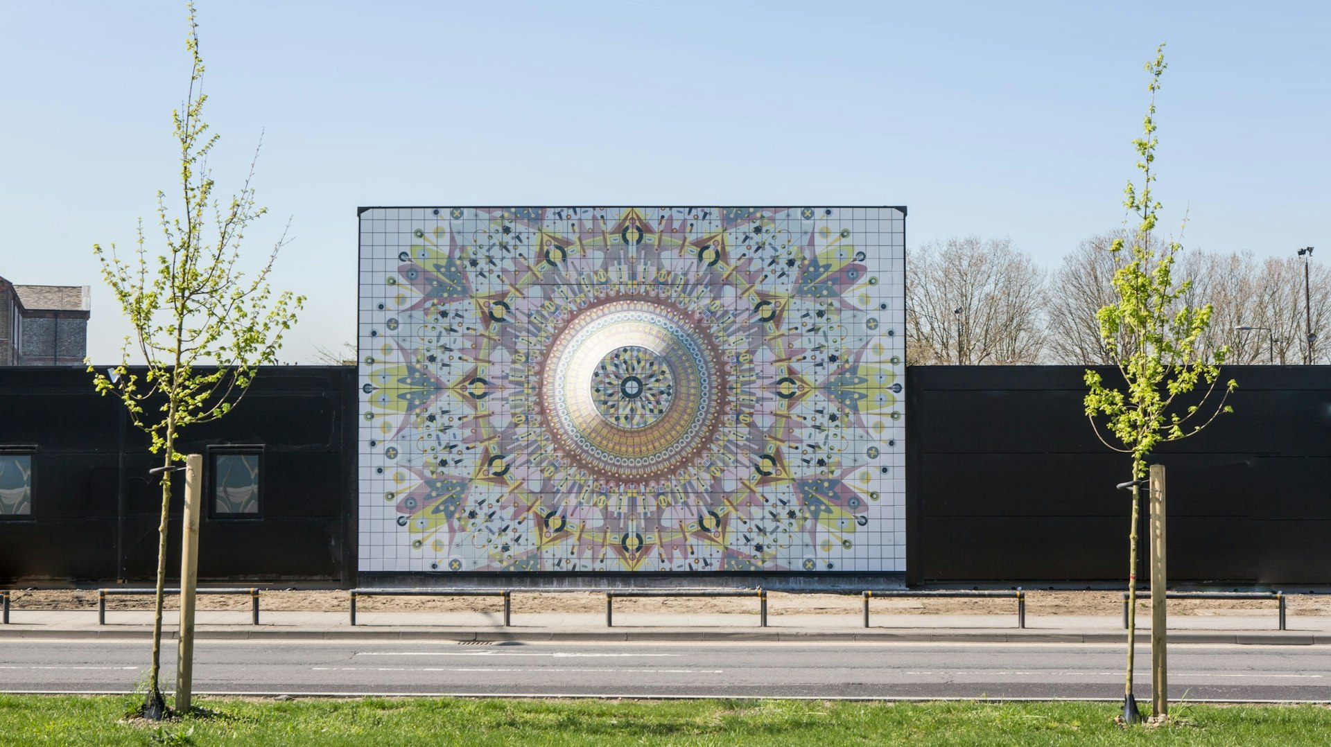Taking inspiration from its rich and industrial legacy, FleaFolly used circular motifs from the surrounding context such as the Blackwall gas tower, the Millennium Dome and the Great Hall of Queens House to create a layered pattern imbued with its past.