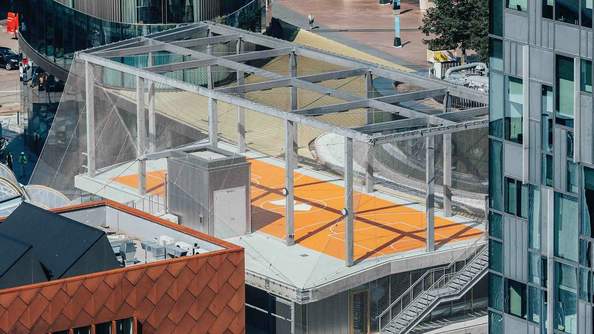 The basketball court is available to book by the hour, for private events and even for location shoots. Located just 1 minute from North Greenwich Station, it’s easy for the whole team to get to. To find out more about pricing and availability of the basketball court, visit the Design District’s website.