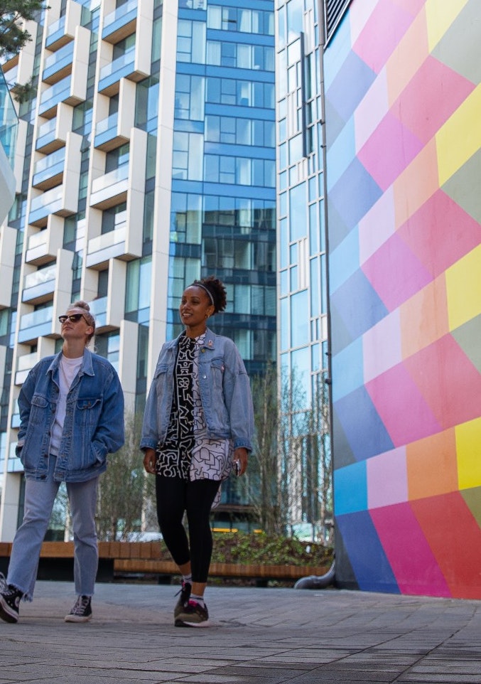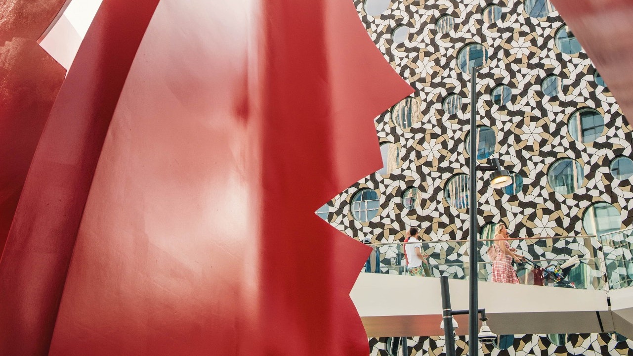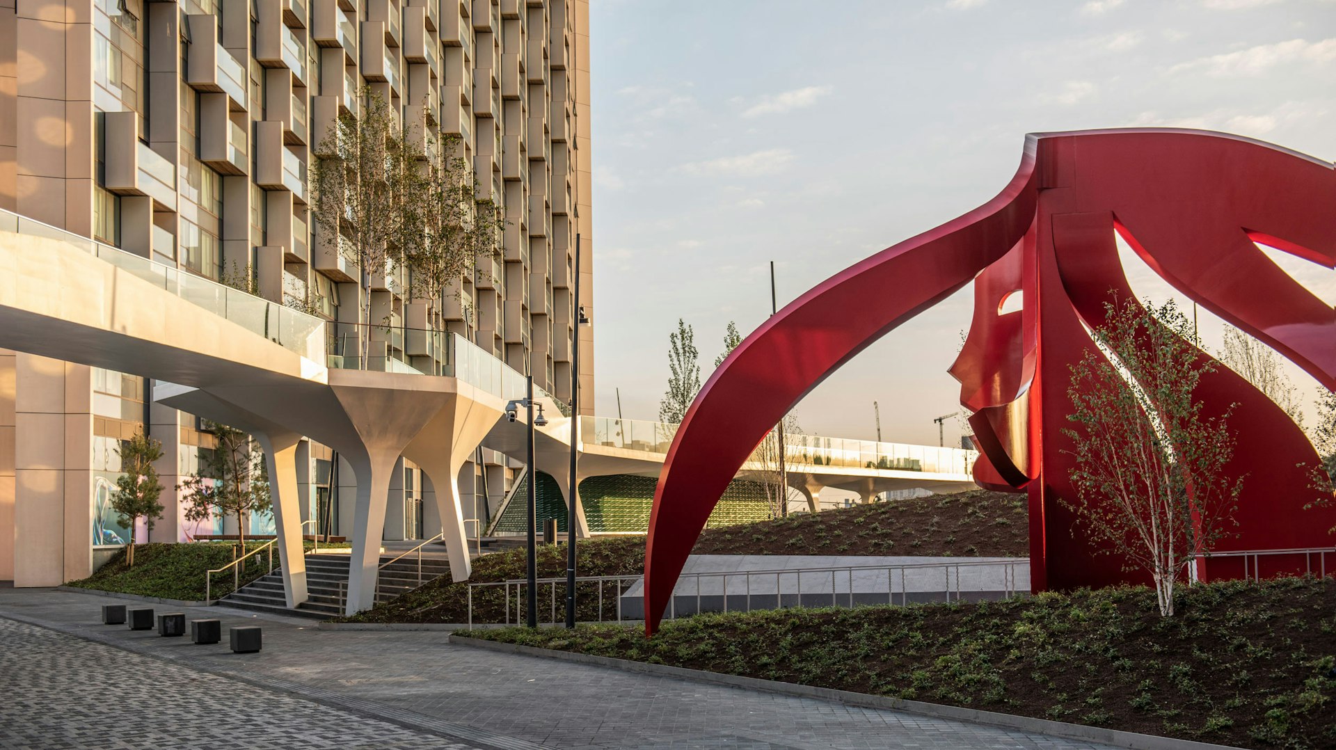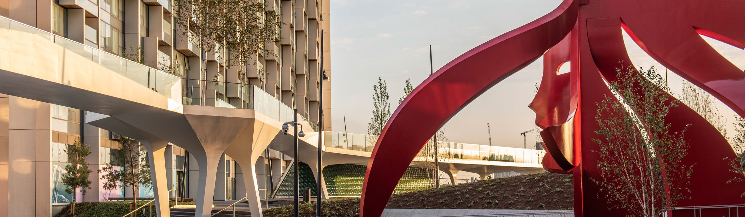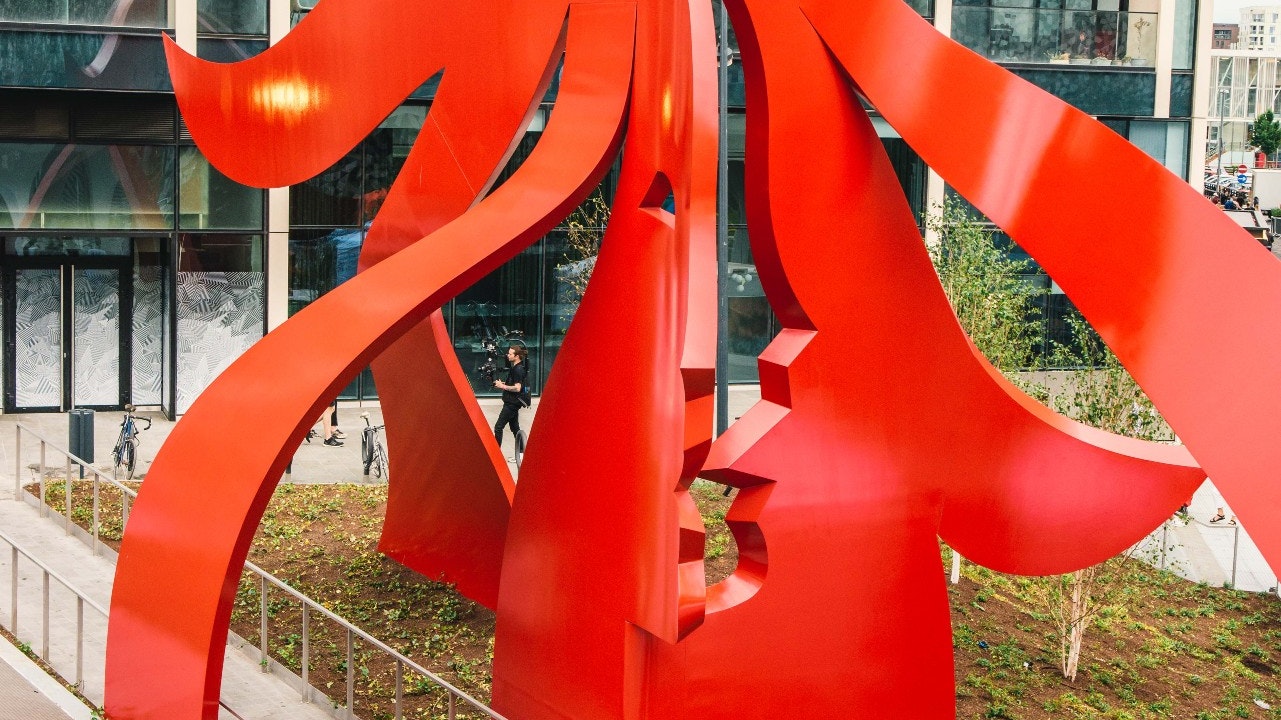 This more recent work, however, is a site-specific work, commissioned for and inspired by The Tide. Visitors and residents alike are invited to both observe and interact with the vibrant, painted-steel piece from above and below for a different perspective on this huge artwork.