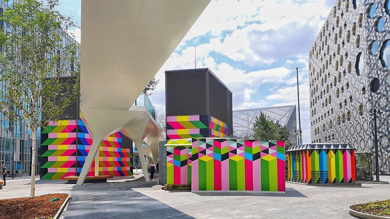 Following on from the 2016 commission ‘Colourblock Cranes’, Morag Myerscough builds on a narrative of re-imagining functional spaces and components on the Peninsula, celebrated through bold pattern and colour.