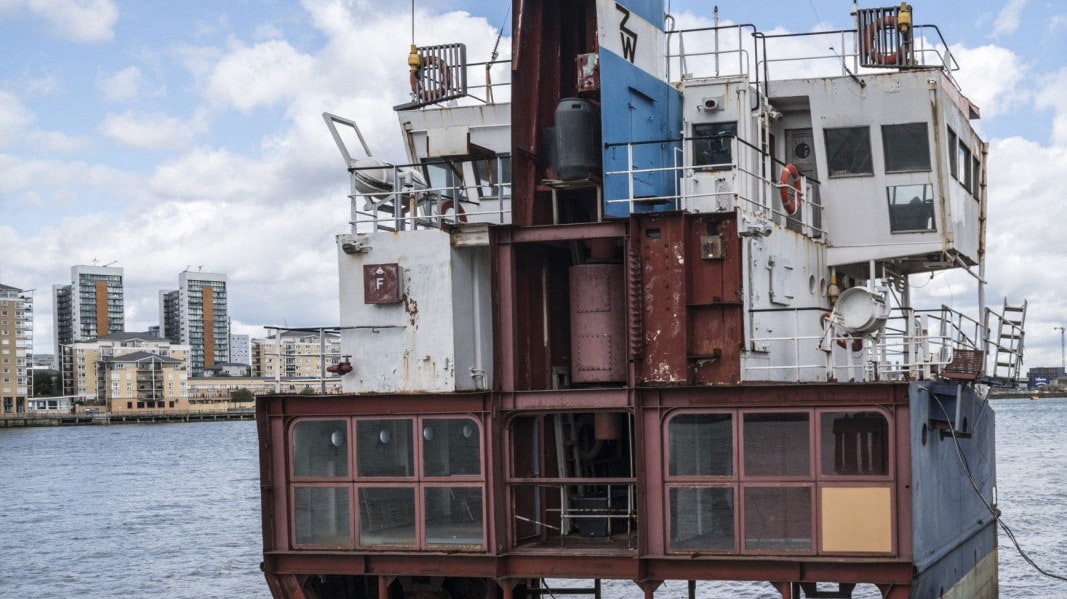 British artist Richard Wilson, who is known for his architectural interventions, acquired the Arco Trent and carved a vertical section of the ship, intentionally exposing the living quarters and engine room – both visually and to the elements.