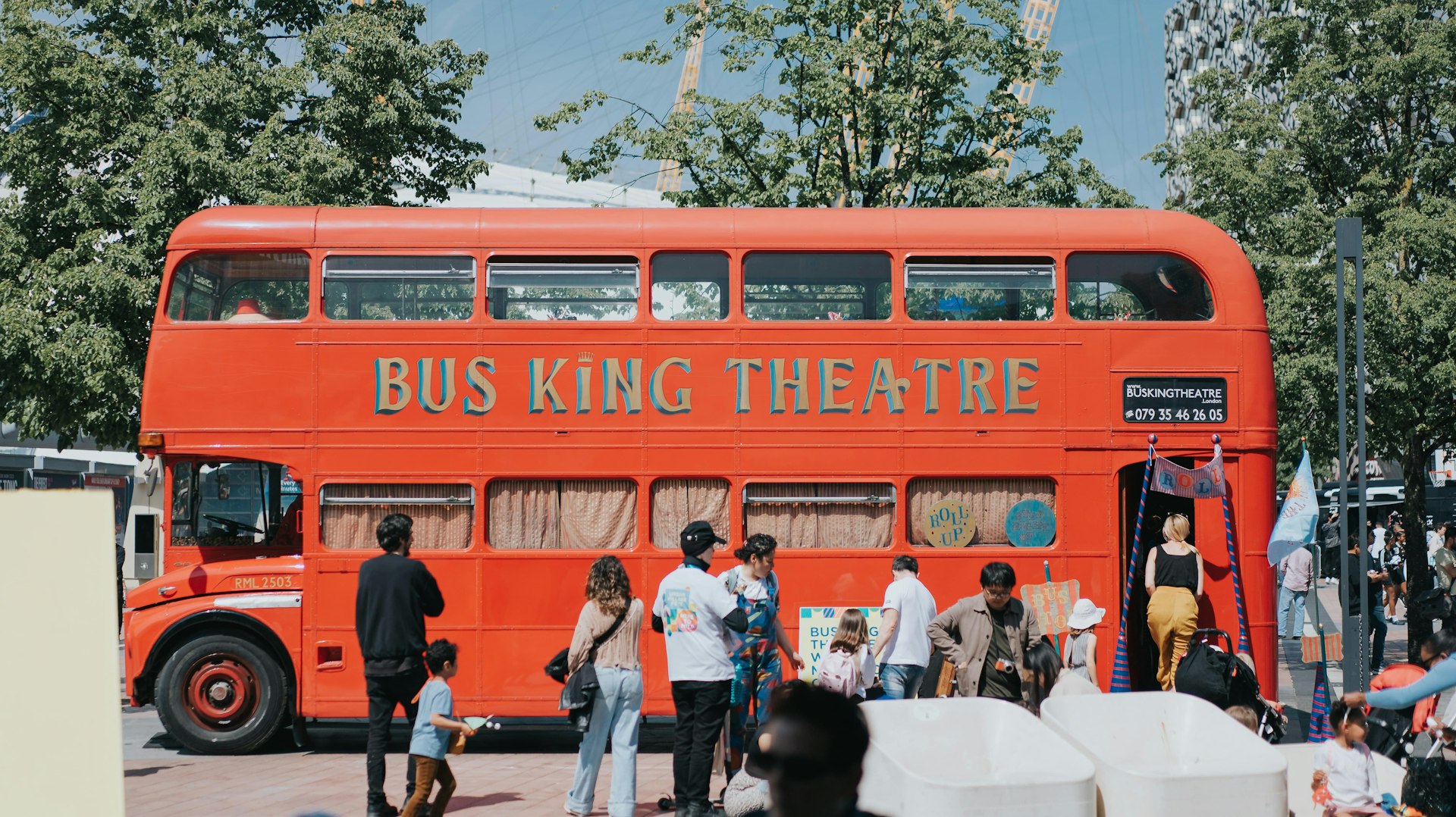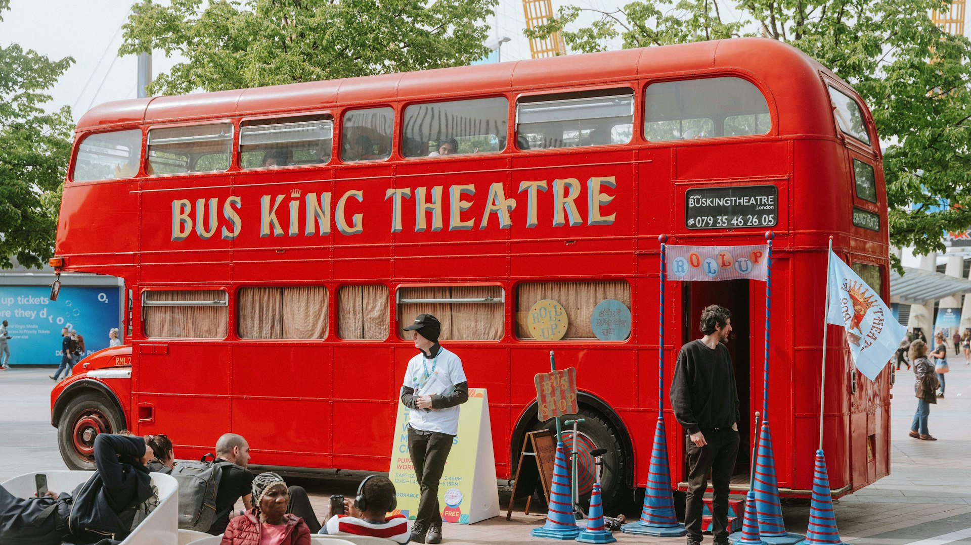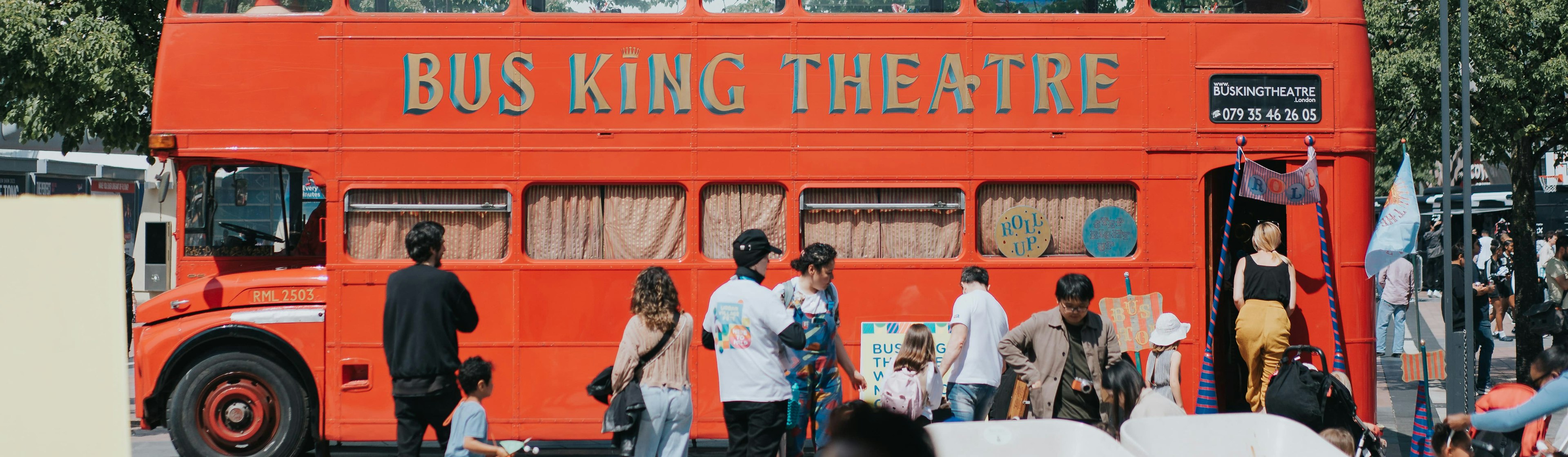 Roll up, roll up! Bus King Theatre is a vintage Routemaster double decker bus converted into an intimate puppet theatre decked in red and gold!