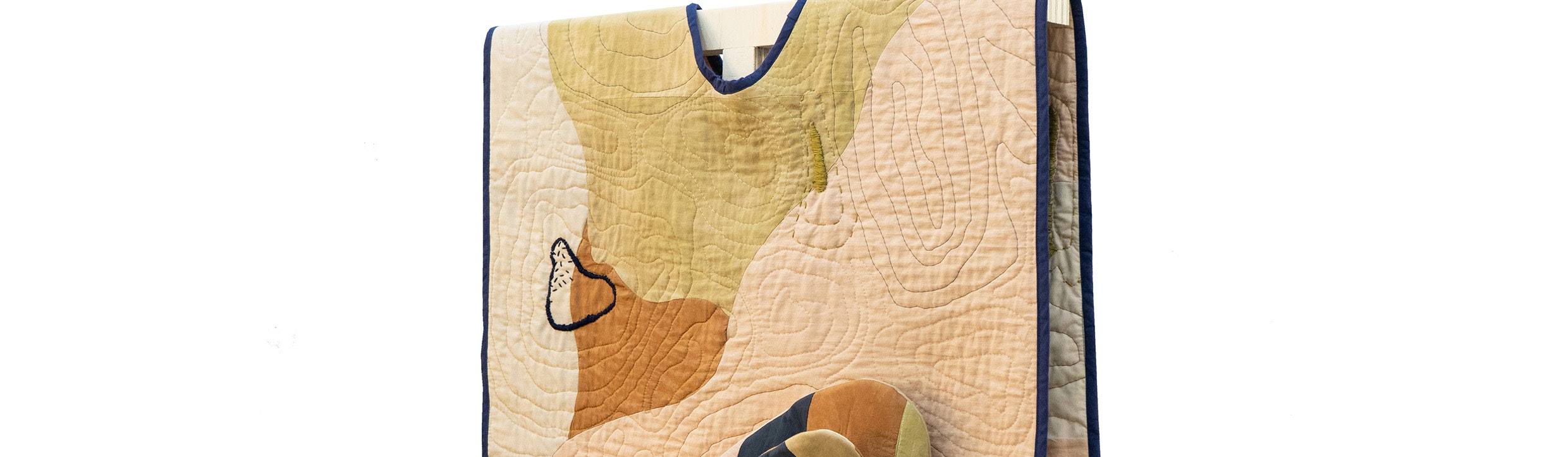 Challenging the concept of waste, Burnhope’s ‘Waste Quilt’ series uses natural dyes to repurpose textile waste, encouraging a sustainable and mindful approach to material usage.