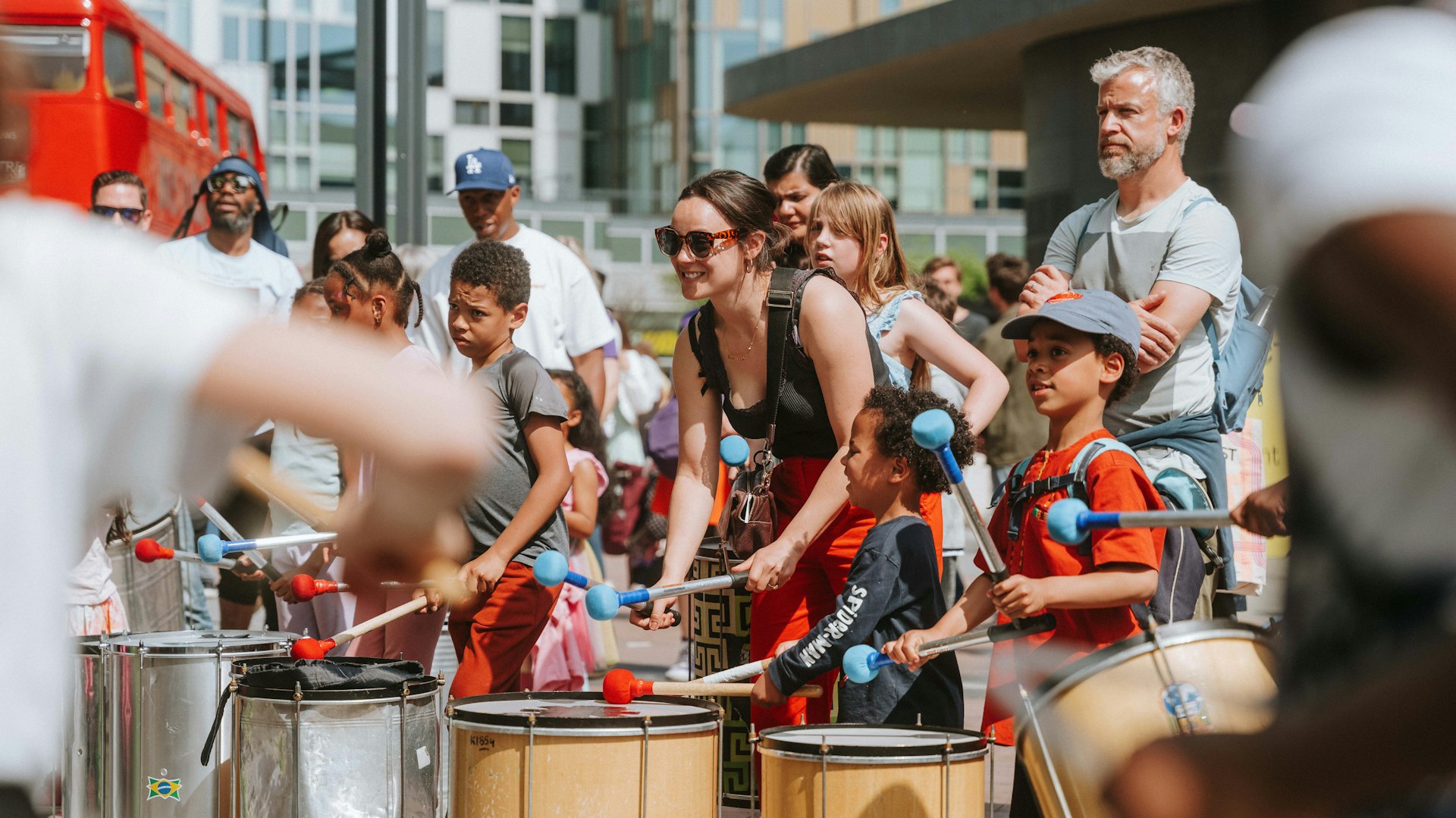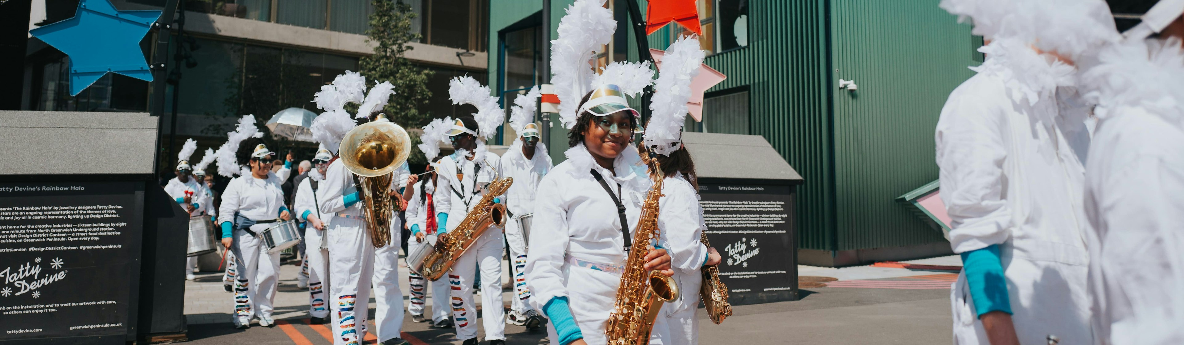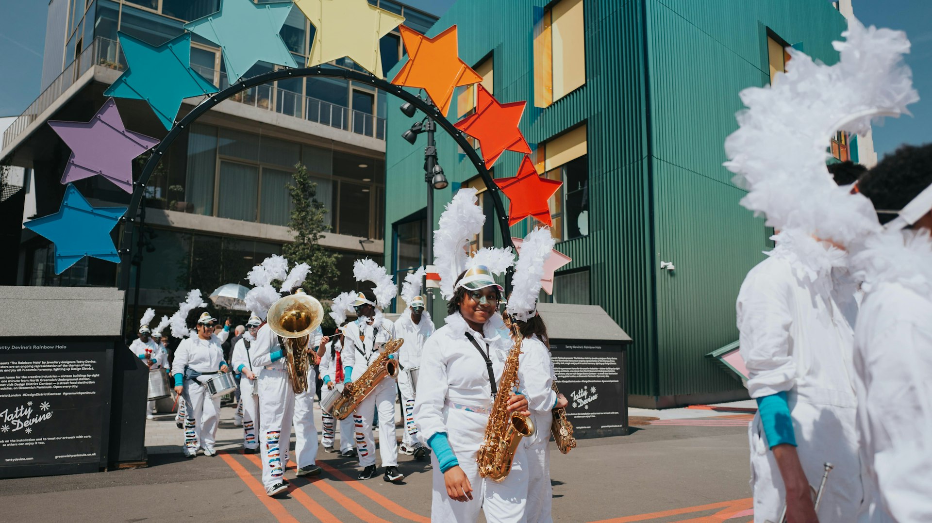 Join the action with a drumming workshop, a high-energy dance class, and a joyous procession through Greenwich Peninsula - leading the fete in a spectacular celebration of music and movement.