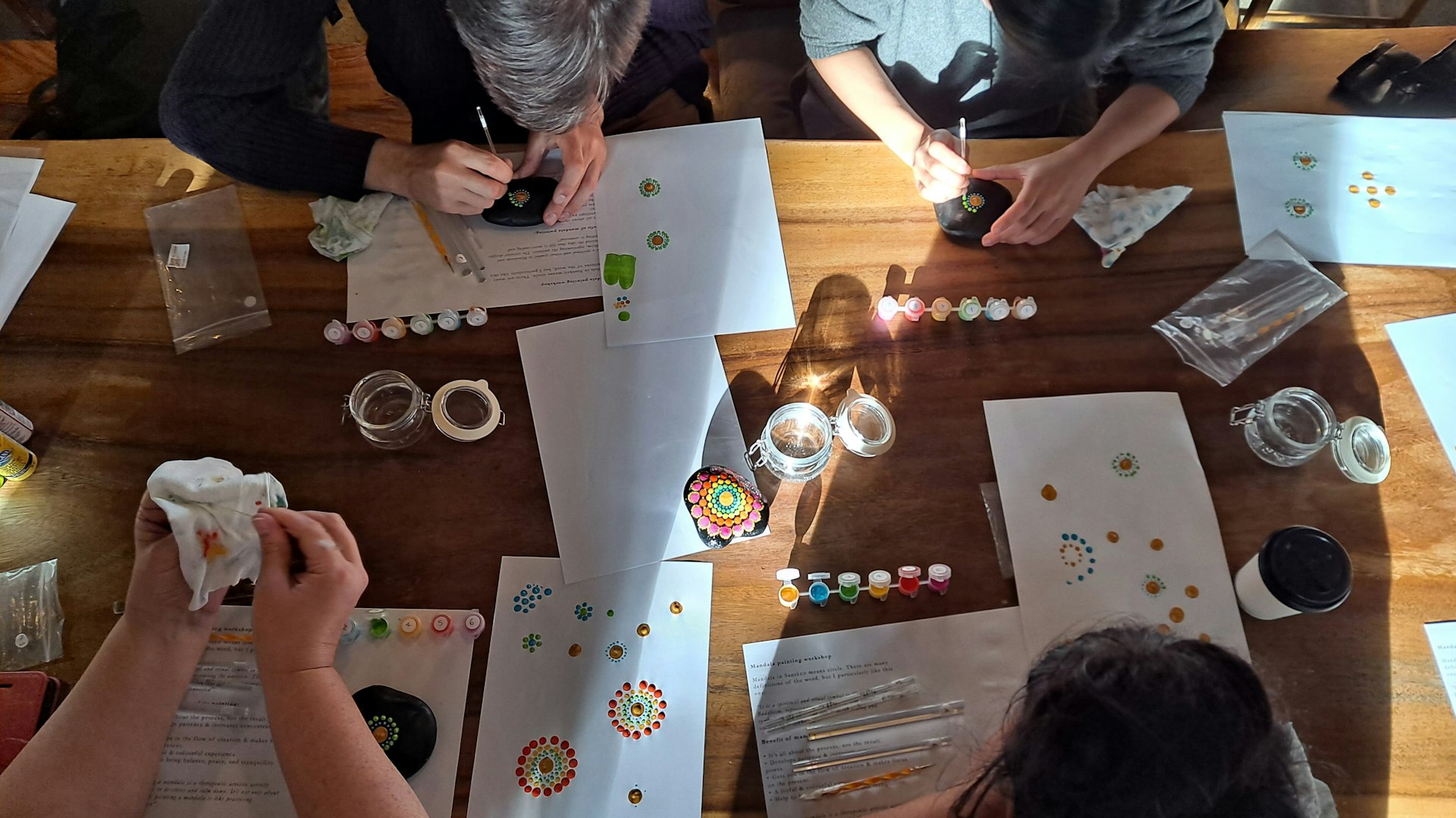- Your very own hand-painted mandala rock as a unique keepsake.