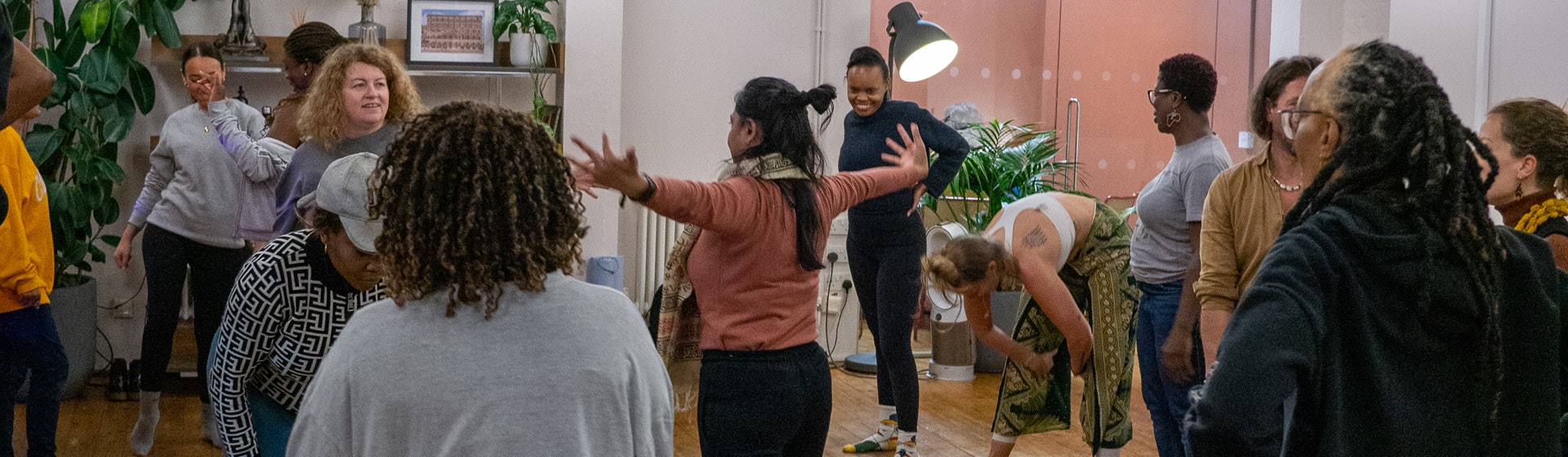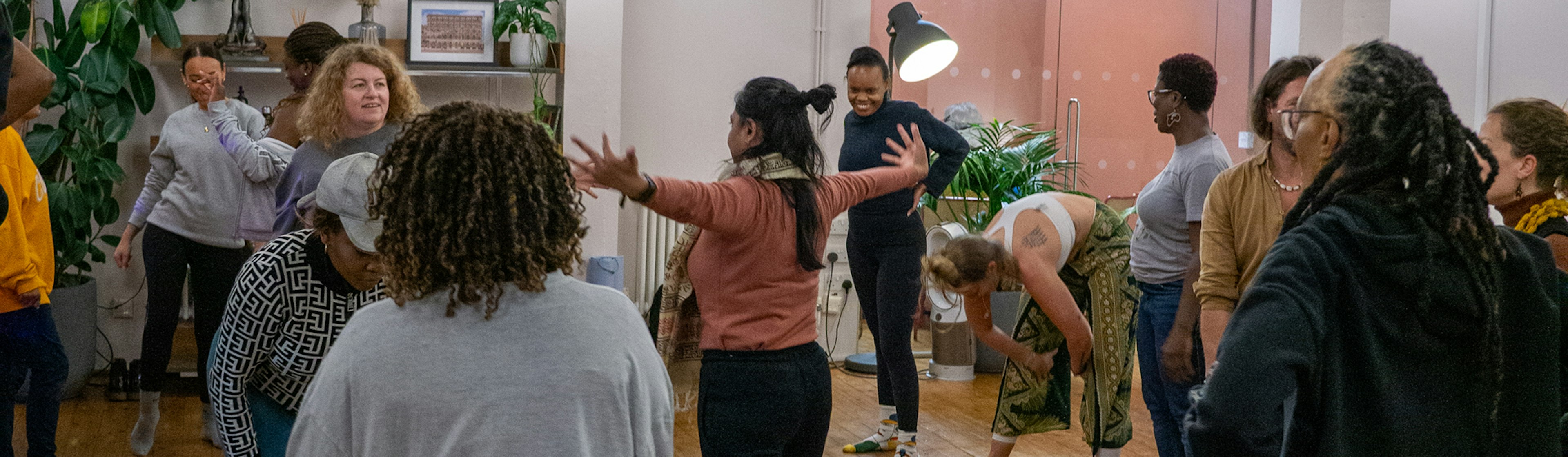 A gentle, guided movement session at Firepit Art Gallery, blending breathwork, intuitive movement and joyful, Bollywood-inspired community dance.