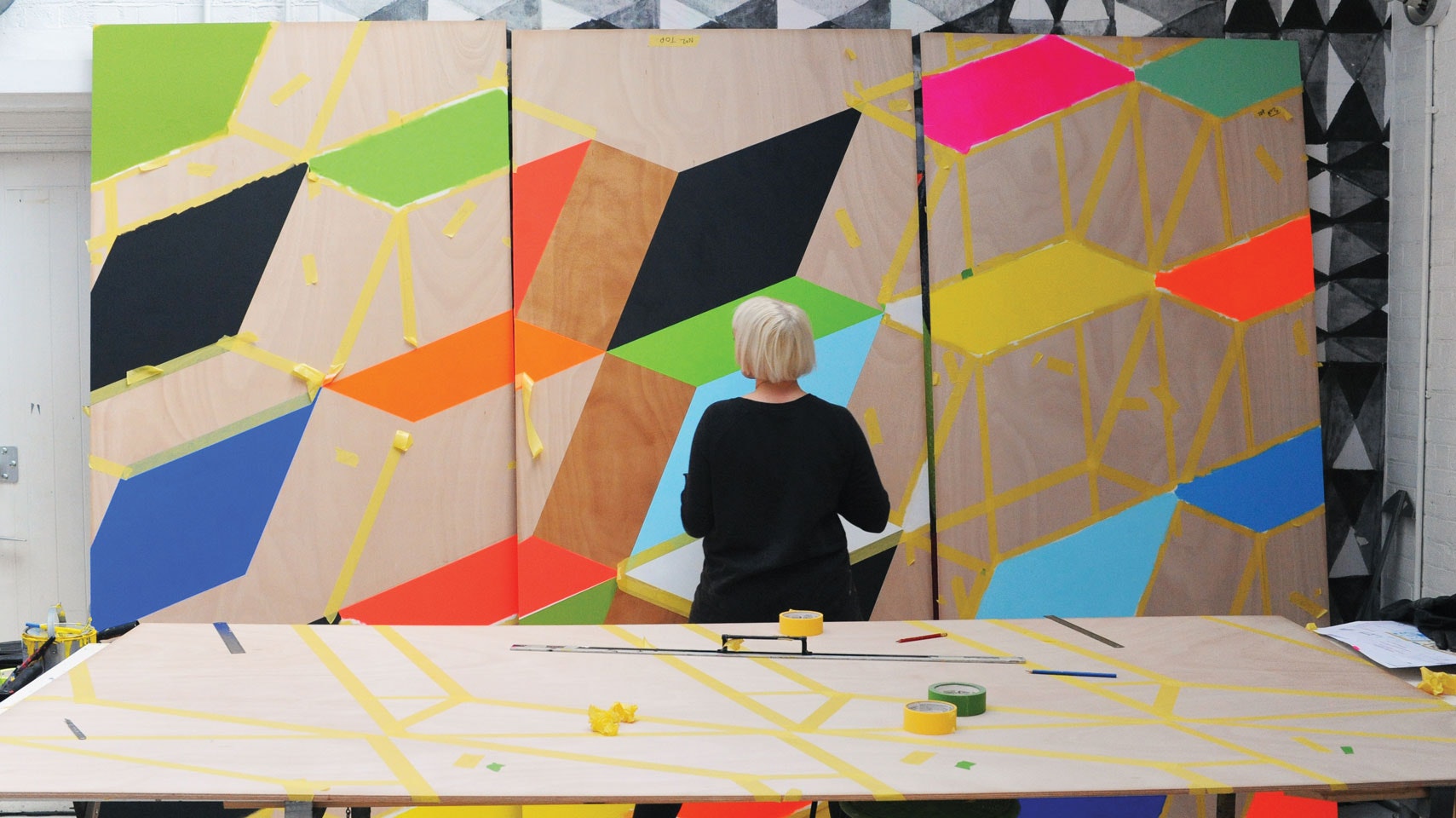 Longstanding visitors to the Peninsula might recognise this London-based artist’s work. Morag’s Studio Myerscough created the Colourblock Cranes, used to frame the construction of the Upper Riverside neighbourhood. Now Morag and her team have turned their attention to The Tide’s arches on either side of the walkway, bringing warmth and illumination through her signature super graphics.