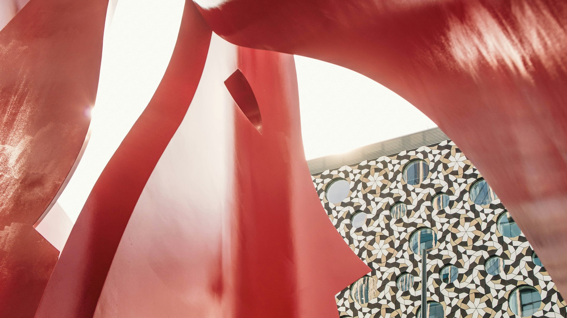 This more recent work, however, is a site-specific work, commissioned for and inspired by The Tide. Visitors and residents alike are invited to both observe and interact with the vibrant, painted-steel piece from above and below for a different perspective on this huge artwork.