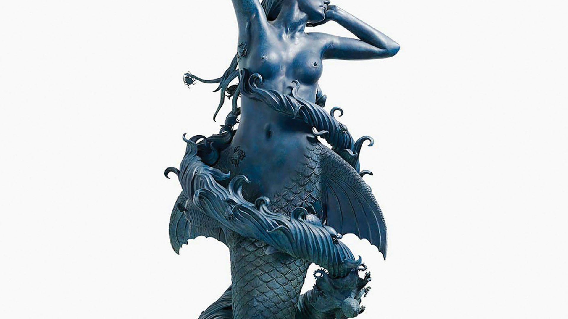 The first two sculptures to be installed from this exhibition are Hydra & Kali – a 17-foot-high sculpture depicting the Hindu goddess fighting a huge, many-headed serpent – and Mermaid – a bronze of a more familiar mythical figure.