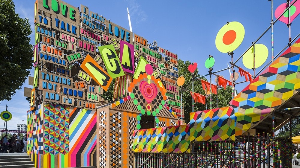 Her oeuvre is broad, spanning the conversion of a train to a café, installations, numerous exhibitions and even a temple for the Southbank Centre’s Festival of love, with Luke Morgan. Myerscough also often works with community groups to develop ideas that reflect the identity of the users, drawing on the shared cultural history and heritage of the local area.