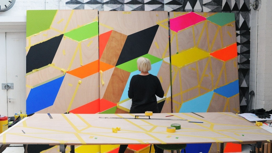 Myerscough’s work is notable for its bright, engaging palette and forms. “I often use a series of four colours in my work to represent the sun. I like the idea that the first two cranes form the sun, and the colours of the other cranes respond to this hot colour palette.” Myerscough creates places from spaces that people like to be in, and it’s important that her work is stimulating — something that makes audiences smile.