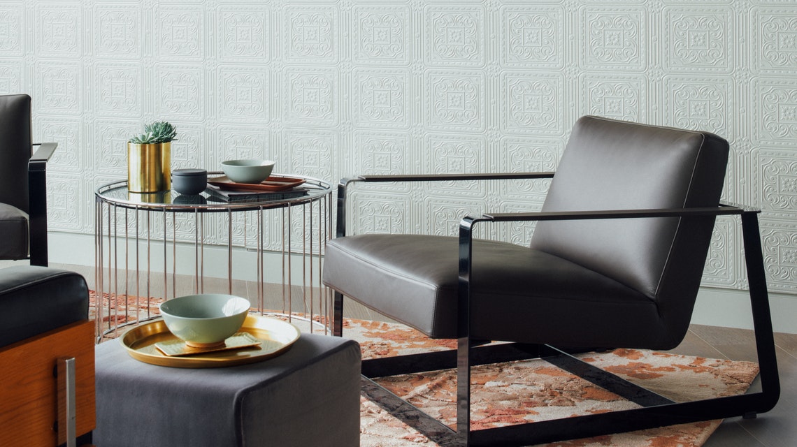 Tactility is also important, and walls are clad in mirrored or textured wallpaper. “I think I will single-handedly bring about the revival of those Anaglypta wall coverings,” she says with a laugh. “Why have flat walls when you can thrill your fingertips with texture?