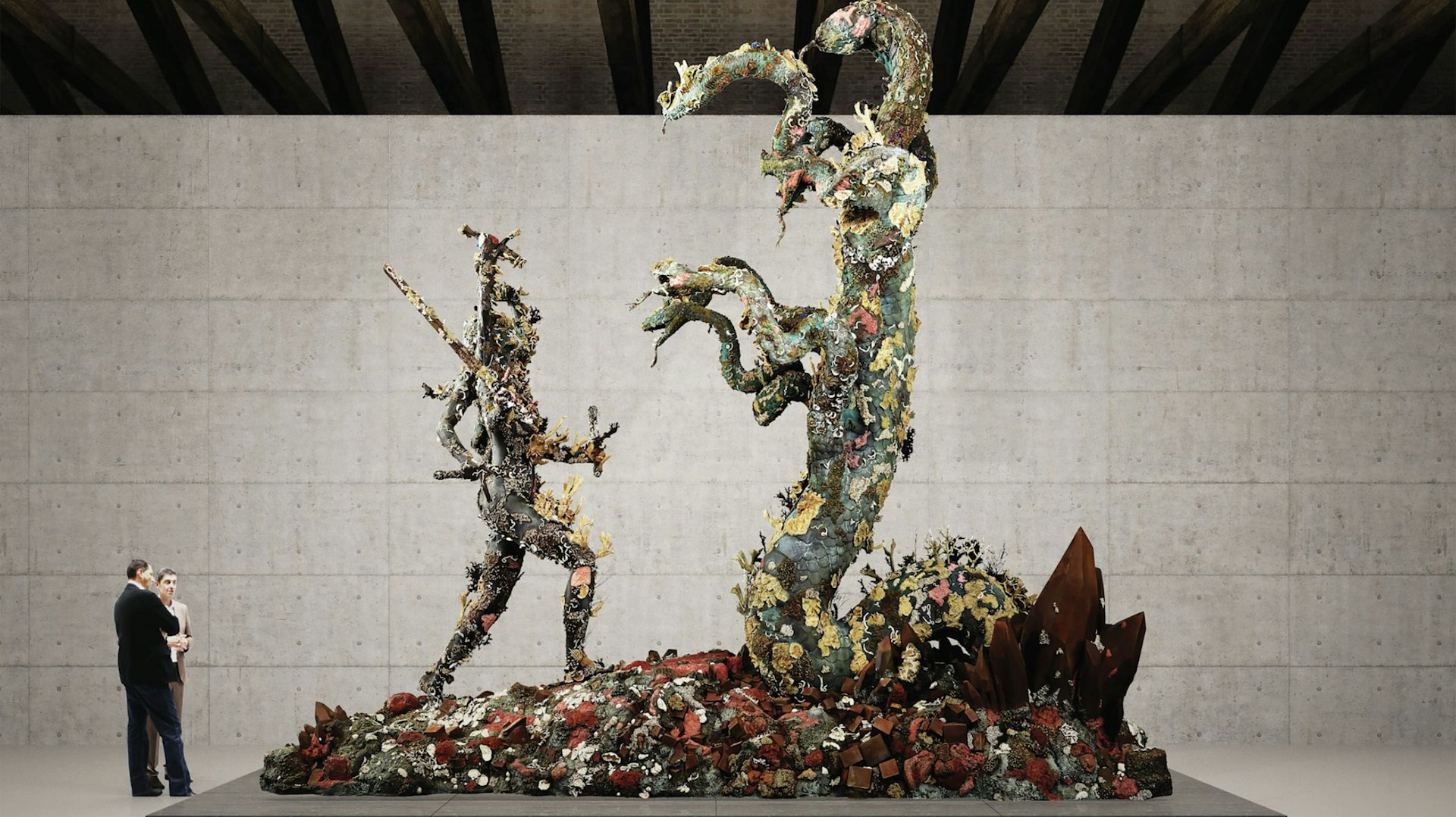 The first sculpture installed at Greenwich Peninsula from Damien Hirst’s Treasures from the Wreck of the Unbelievable exhibition is Hydra & Kali – a 17-foot-high sculpture depicting the Hindu goddess fighting a huge, many-headed serpent.