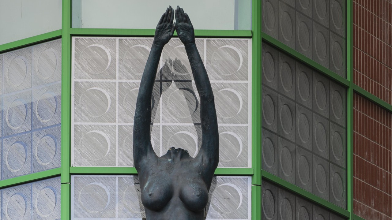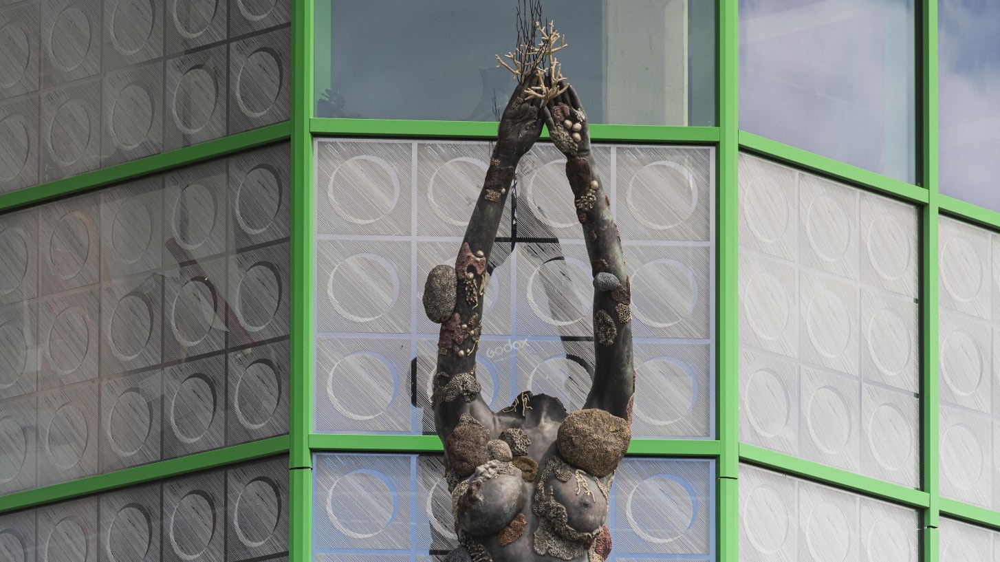 These sculptures are part of Damien Hirst’s Treasures from the Wreck of the Unbelievable series, first exhibited at the 2017 Venice Biennale and can be seen on either side of building A4 in Design District.