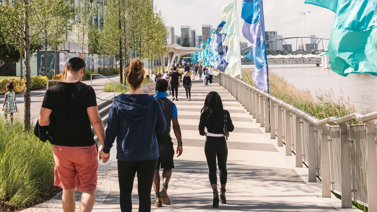 A vibrant mixed-use pedestrianised district in the heart of the Peninsula is also home to Ravensbourne College students and acts as the gateway to The Tide, a riverside linear park.