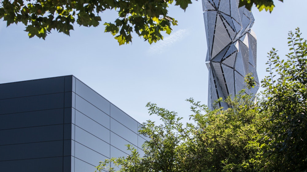 Conrad Shawcross’ The Optic Cloak is the latest piece to be embedded into this impressive outdoor gallery, acting as both camouflage to the soon-to-be completed Energy Centre’s soaring flues, and as a beacon to the Peninsula. The Energy Centre will be providing low-carbon energy to more than 15,000 homes on the Peninsula. Central to its design is ‘The Blade’, a series of 50m-tall flues set into a slim, horizontal box. Greenwich council’s request that these should somehow be disguised was identified as an opportunity for a piece of public art. Artists were invited to send in their ideas and Shawcross’ work was selected for its elegance and ingenuity.