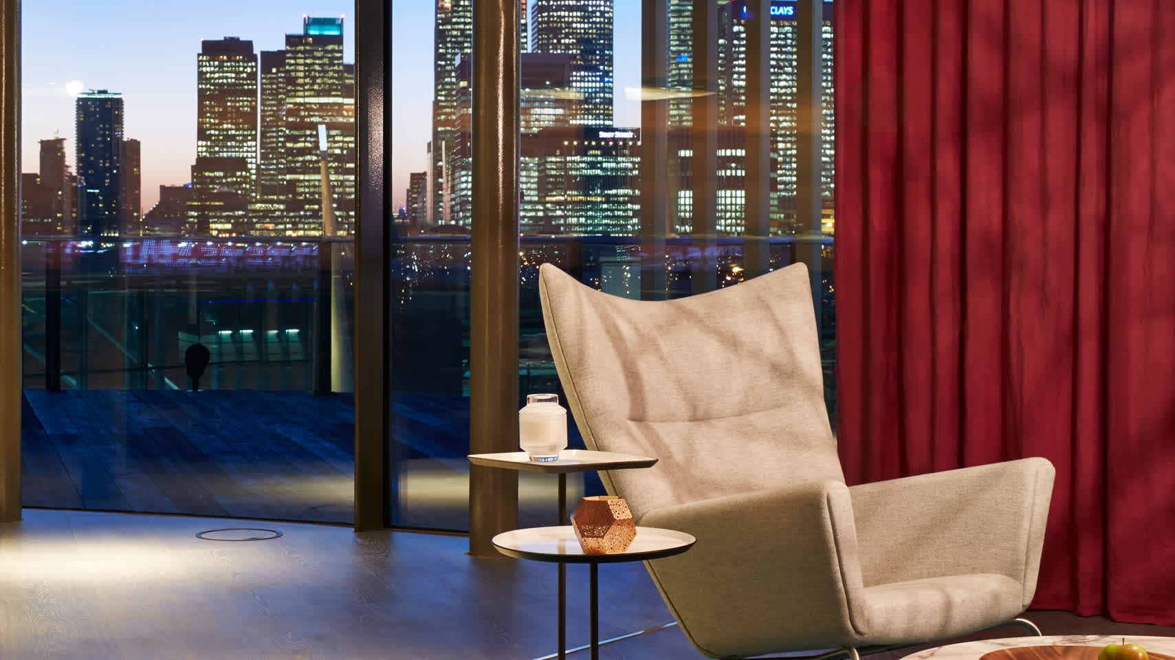 The Peninsula has long been a stomping ground for British industrial designer Tom Dixon. From age five, Dixon and his family lived in Blackheath, just up the hill from Greenwich. “We used to go to the Cutty Sark, so I have vivid memories of the maritime history of the area.” Given this, it wasn’t tricky to convince Dixon to contribute his high-concept interiors to a limited-edition series of SOM-designed apartments and lofts, housed within the new Upper Riverside district. “The idea was to make them a bit grittier, a bit more ‘British’ in a way—to try and bring in some warmth and realness,” says Dixon.