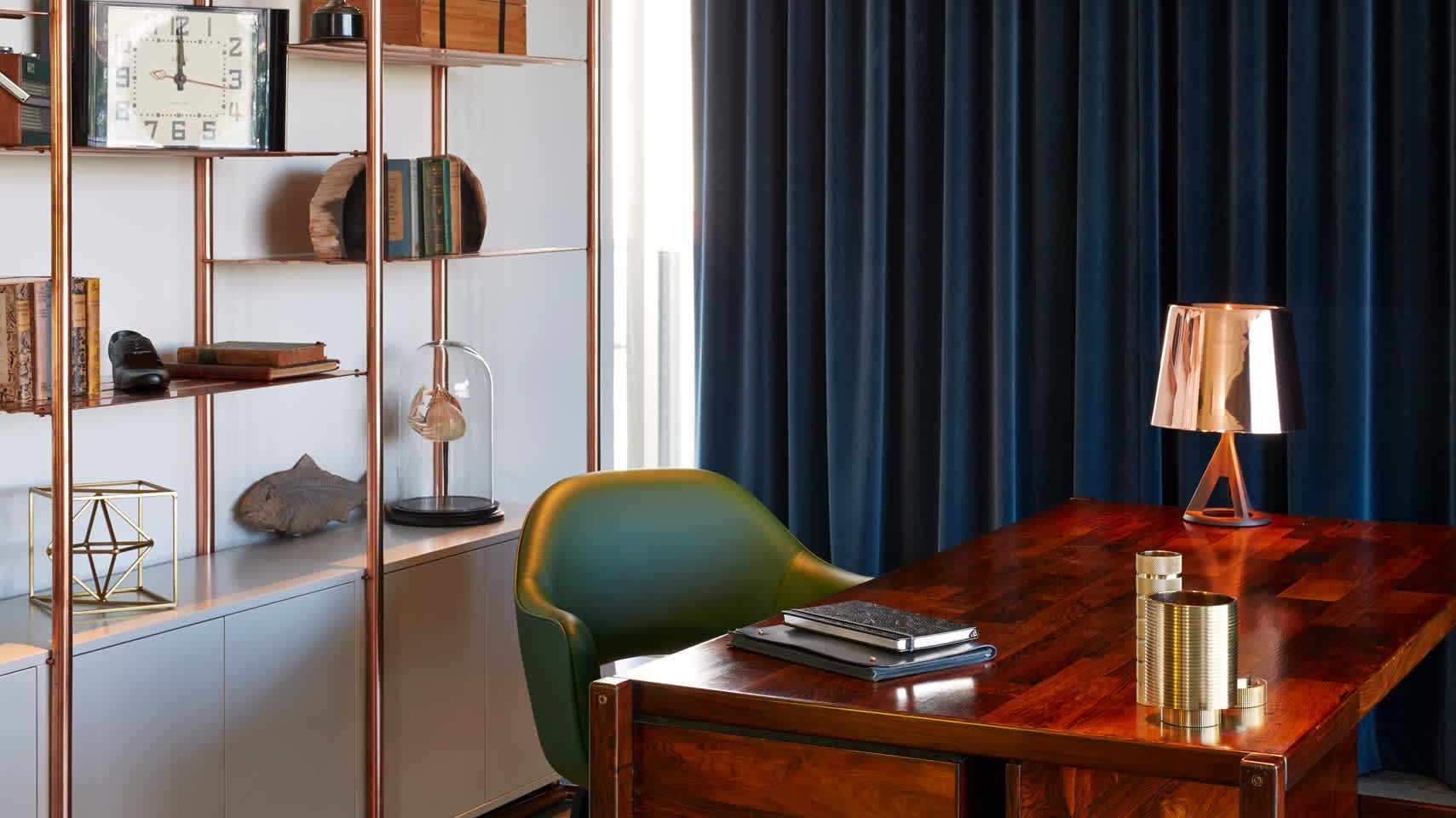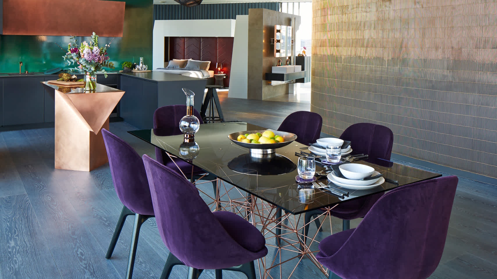 In the public spaces, too, Dixon has set about drawing the outside in: “We used this idea of sedimentary layers, of erosion and tides, in the design of the lobby—with its stepped curves, the designs look almost Art Deco, but at the same time they make it feel organic and local,” he says. Stepping into the dwellings, the Dixon touch—more copper than Midas—is immediately evident in the natural and warm materials and richly layered surfaces, which make use of copper, leather and wood.