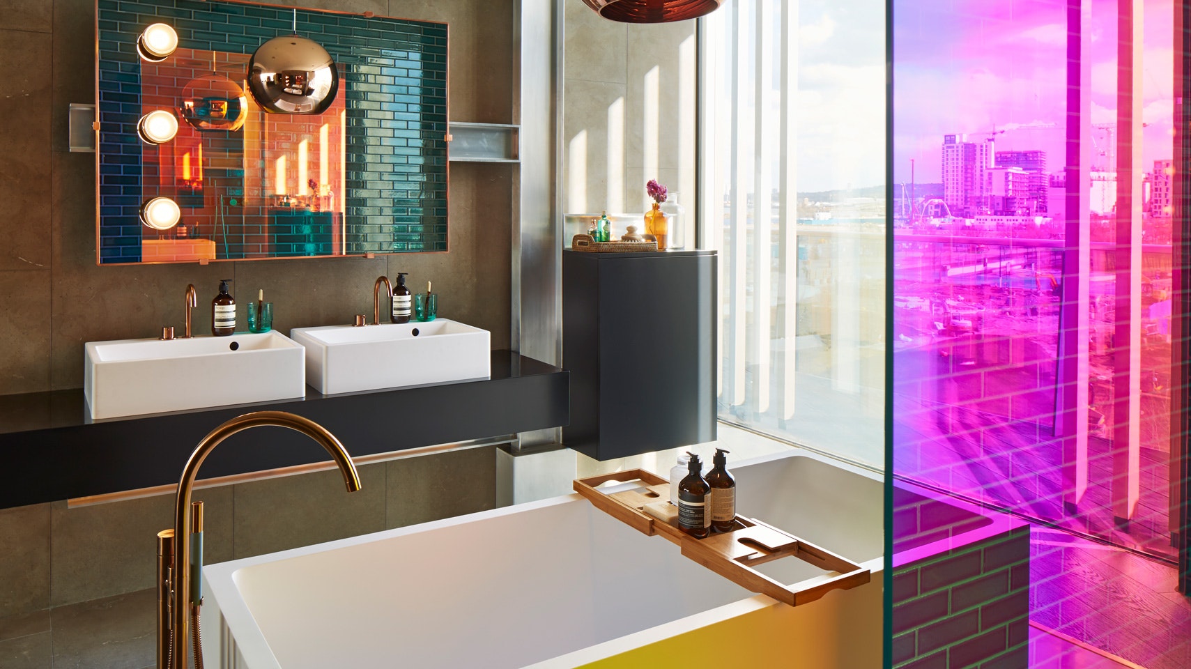 It’s an interesting marriage in Dixon’s work, this meeting of respect for industry and classic materiality with integration of high-tech production techniques. Take Dixon’s pick of design features within the Upper Riverside: “I love the iridescent shower screen, which gives a touch of futurism and a flash of colour to a space that so often is about pale and anaemic colours and humourless hygiene.”
